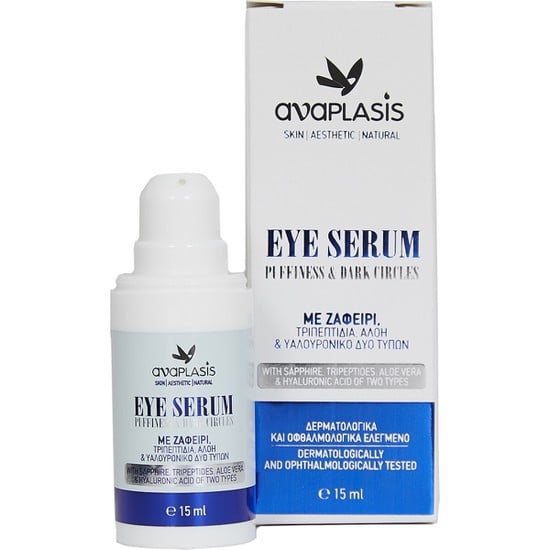 ANAPLASIS Eye Serum Puffiness & Dark Circles Με Ζαφείρι, Τριπεπτίδια, Αλόη & Υαλουρονικό Δύο Τύπων 15ml