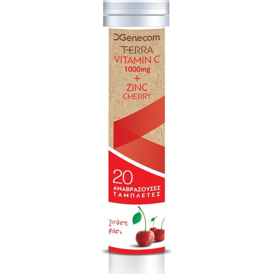 Genecom Terra Vitamin C 1000mg + Zinc, με γεύση κεράσι, 20 αναβράζοντα δισκία