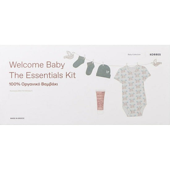 Korres Welcome Baby The Essentials Kit Κορμάκι & Καλτσάκια & Σκουφάκι από 100% Οργανικό Βαμβάκι