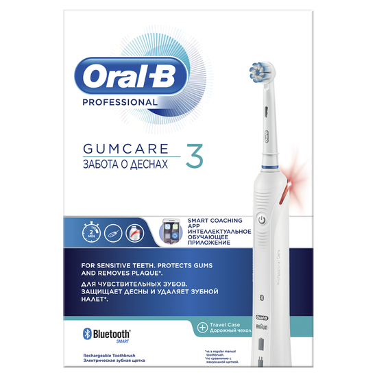 Oral-B, η νούμερο 1 μάρκα ηλεκτρικής οδοντόβουρτσας που συνιστούν οι οδοντίατροι παγκοσμίως Το ξέρατε αυτό; Η επαγγελματική οδοντόβουρτσα Oral-B προστατεύει τα ούλα και αφαιρεί έως και 100% περισσότερη πλάκα σε σύγκριση με μια χειροκίνητη οδοντόβουρτσα. Η Gumcare 3 με Έξυπνη Καθοδήγηση σας βοηθά να βελτιώσετε τις συνήθειες βουρτσίσματος για να προστατεύετε τα ούλα. Συνδέεται απρόσκοπτα με την εφαρμογή Oral-B του κινητού σας και σας καθοδηγεί με σχόλια σε πραγματικό χρόνο, για να βουρτσίζετε τα καλύτερα. Ο ορατός αισθητήρας πίεσης μειώνει την ταχύτητα του βουρτσίσματος και σας προειδοποιεί οπτικά να μειώσετε την πίεση, αν το βούρτσισμα είναι υπερβολικά δυνατό. Η εξαιρετικά λεπτή κεφαλή Sensitive Ultra-Thin προστατεύει τα ούλα και καθαρίζει απαλά τη γραμμή των ούλων, ενώ η κεφαλή Interspace προσφέρει επιπλέον δυνατότητα μεσοδόντιου καθαρισμού, αφαιρώντας ακόμη περισσότερη πλάκα μεταξύ των δοντιών.Η GumCare3 προσφέρει καθοδήγηση σε πραγματικό χρόνο για καλύτερες συνήθειες βουρτσίσματος και νέα προηγμένα επίπεδα στην προστασία των ούλων. Με μοναδικό σχεδιασμό για εκείνους που έχουν εξαιρετικά ευαίσθητα ούλα και δόντια και χρειάζονται ανώτερο καθαρισμό.Περισσότερες από 2 εβδομάδες διάρκειας ζωής μπαταρίας. Διαθέτει 3 προγράμματα βουρτσίσματος 1) για ευαίσθητα ούλα 2) για καθημερινό καθαρισμό 3) για λεύκανση. Περιλαμβάνεται θήκη ταξιδίου.Γιατί είναι τόσο σημαντικά τα ούλα μας; Η προστασία των ούλων αποτελεί βασικό σημείο της συνολικής υγείας του στόματός σας. Η Gumcare3 με Έξυπνη Καθοδήγηση για καλύτερες συνήθειες βουρτσίσματος, τεχνολογία ελέγχου πίεσης στα ούλα με οπτική ειδοποίηση και τις δύο κεφαλές της οδοντόβουρτσας (η Sensitive Ultra-Thin και η μεσοδόντια) είναι ιδανικός σύντροφος για υγιή ούλα.