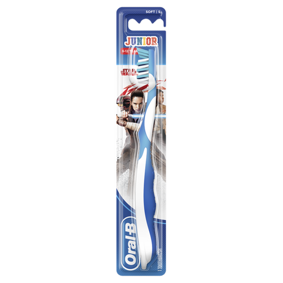 Η χειροκίνητη οδοντόβουρτσα Oral-B Junior με χαρακτήρες από το Star Wars με άνετη αντιολισθητική λαβή είναι ειδικά σχεδιασμένη για παιδιά 6-12 ετών. Οι τρίχες CrissCross που διαθέτει αφαιρούν αποτελεσματικά την πλάκα. Σχεδιασμένη για μεγαλύτερα παιδιά που έχουν νεογιλά και μόνιμα δόντια.