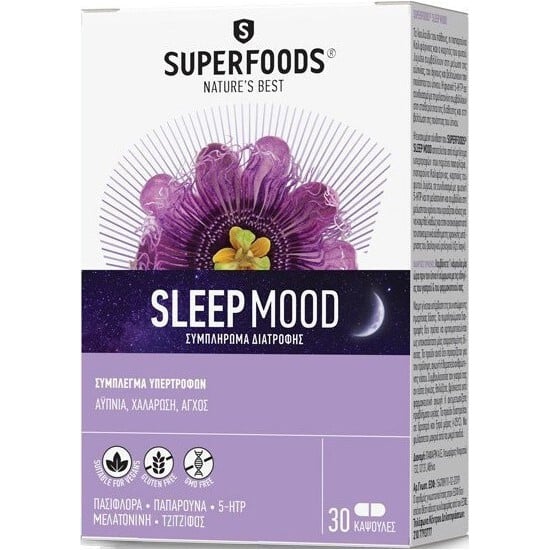 Superfoods Sleep Mood 30 Kάψουλες – Συμπλήρωμα Διατροφής Για Την Μείωση Της Αϋπνίας & Του Άγχους